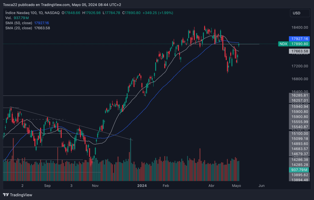 El índice Nasdaq 100 se encuentra en un momento determinante, ya que necesita superar la resistencia clave de 17,890 puntos para mantener su tendencia alcista. La capacidad del índice para romper esta barrera será crucial para su dirección futura.