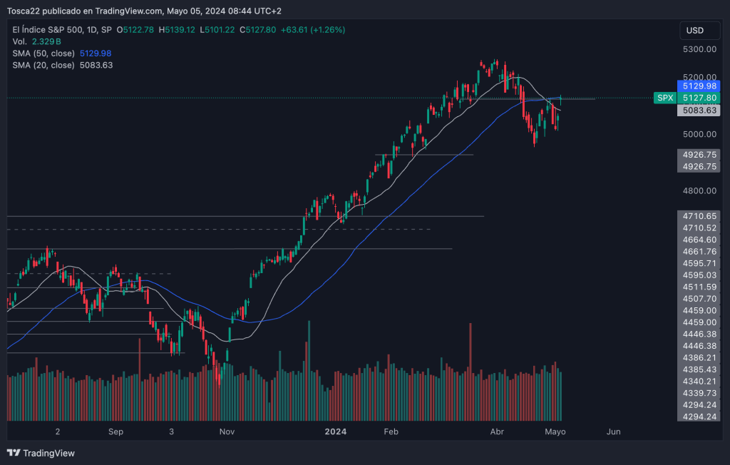 El índice S&P 500 se encuentra en un momento crucial, ya que aún no ha logrado superar la resistencia clave de 5,127 puntos, un nivel vital para mantener su tendencia alcista. La capacidad del índice para romper esta barrera determinará en gran medida su dirección futura.