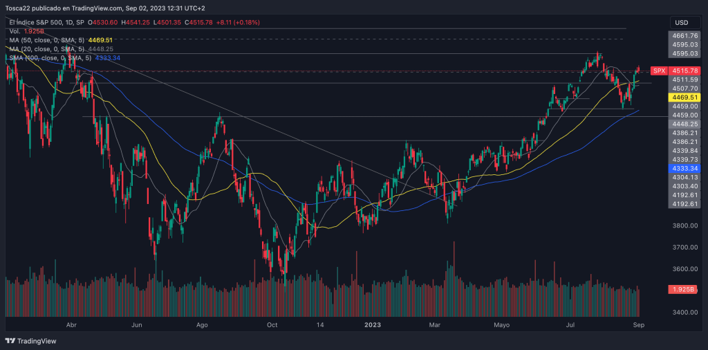 El índice S&P 500 ha conseguido superar la resistencia de los 4,458 puntos y actualmente se encuentra en la resistencia de los 4,508 puntos. Si logra superar esta resistencia, el próximo objetivo estaría en los 4,594 puntos, y una vez superado este nivel, podría dirigirse hacia los 4,660 puntos. Sin embargo, si no puede mantenerse por encima de los 4,508 puntos, es posible que retroceda hacia la zona de los 4,456 puntos nuevamente.