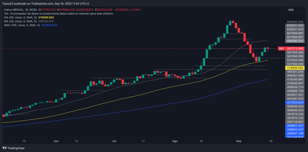 El índice Merval en dólares ha logrado rebotar exitosamente en el soporte de los 727 USD. Actualmente, se dirige hacia la resistencia en los 786 USD. En caso de no superar esta resistencia, es probable que vuelva a caer hasta los 727 USD. Sin embargo, si logra superarla, el siguiente objetivo se encuentra en los 813 USD.
